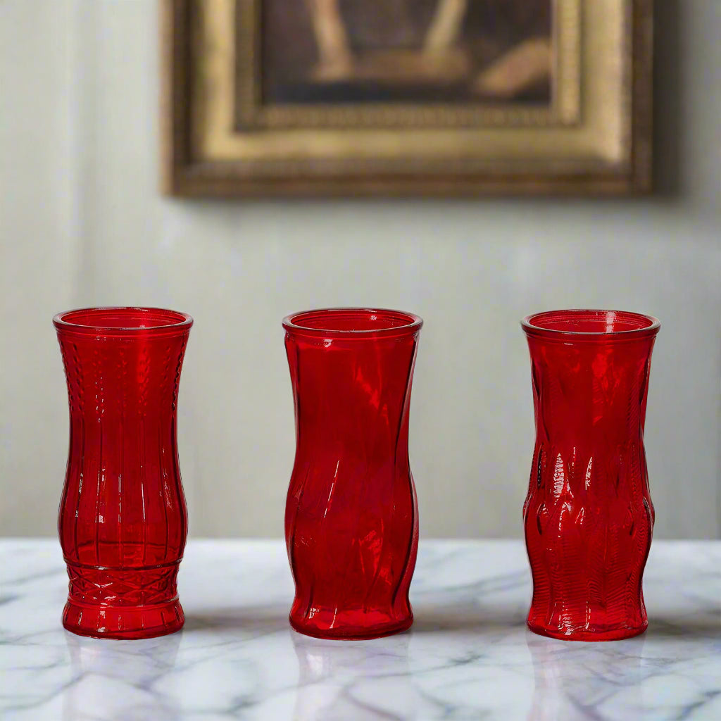 - Red Set (3 Assorted): 4.00" x 4.00" x 8.75" H each