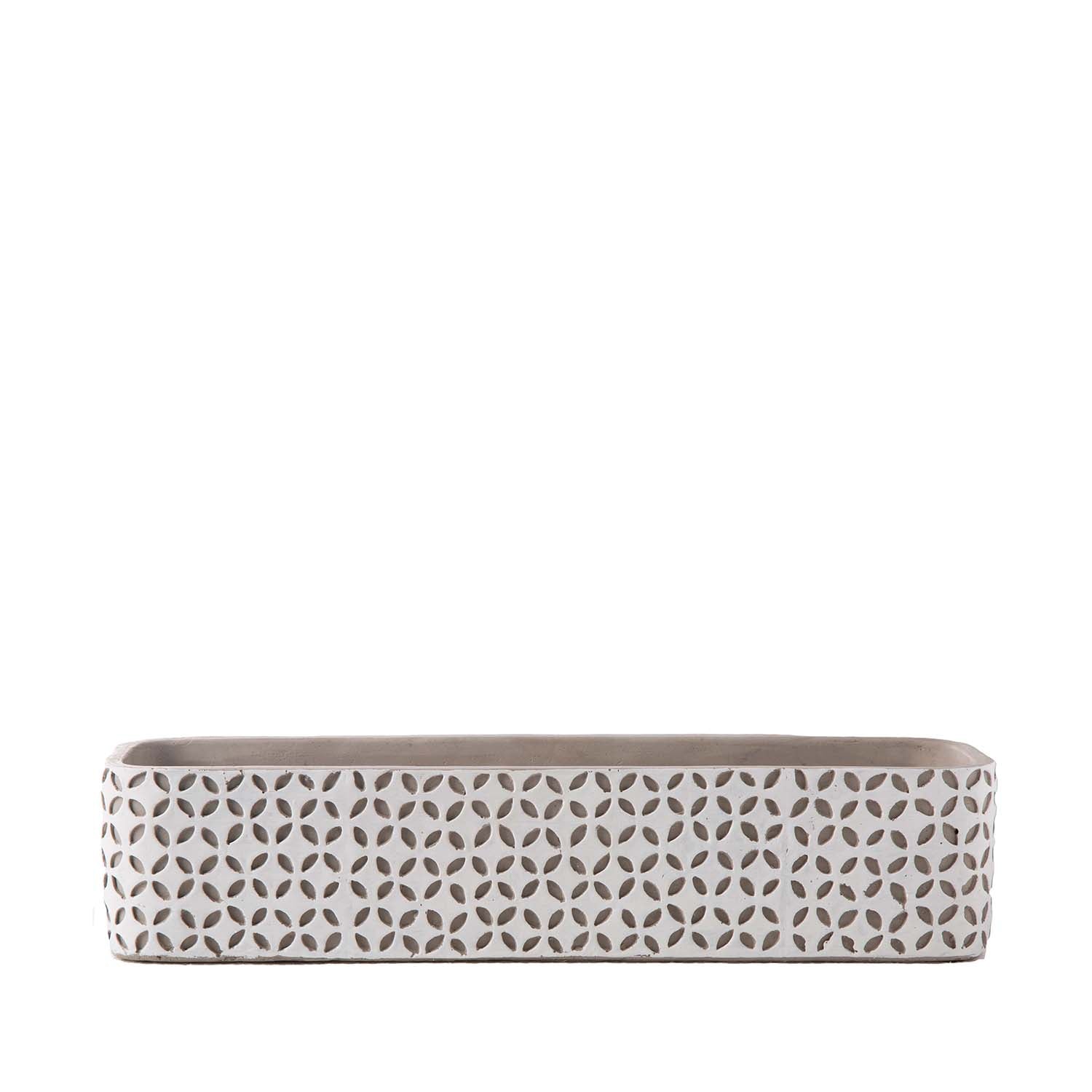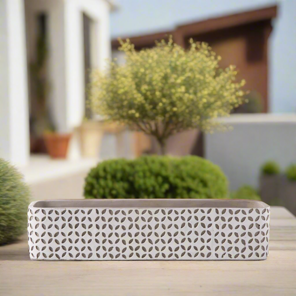 The Beverly Cement Low Oval Pot features a refined silhouette with a seamless debossed geometric pattern across its body. Its low, oval shape adds a modern yet timeless appeal, making it perfect for displaying succulents, herbs, or floral arrangements. With its sturdy cement construction and sleek design, this piece offers both durability and decorative elegance.
