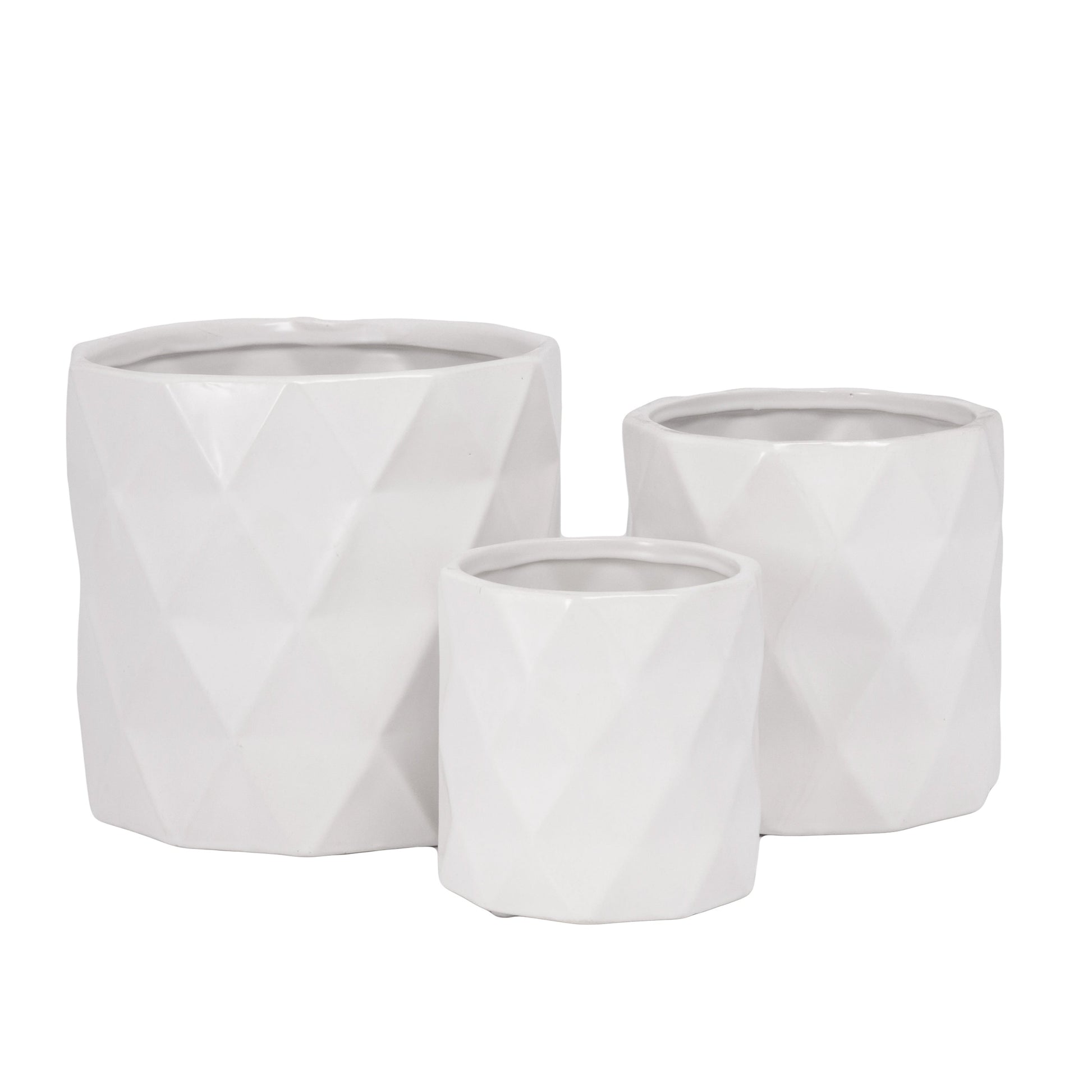 Dagen Diamond Embossed Ceramic Pot Set (Set of 3)