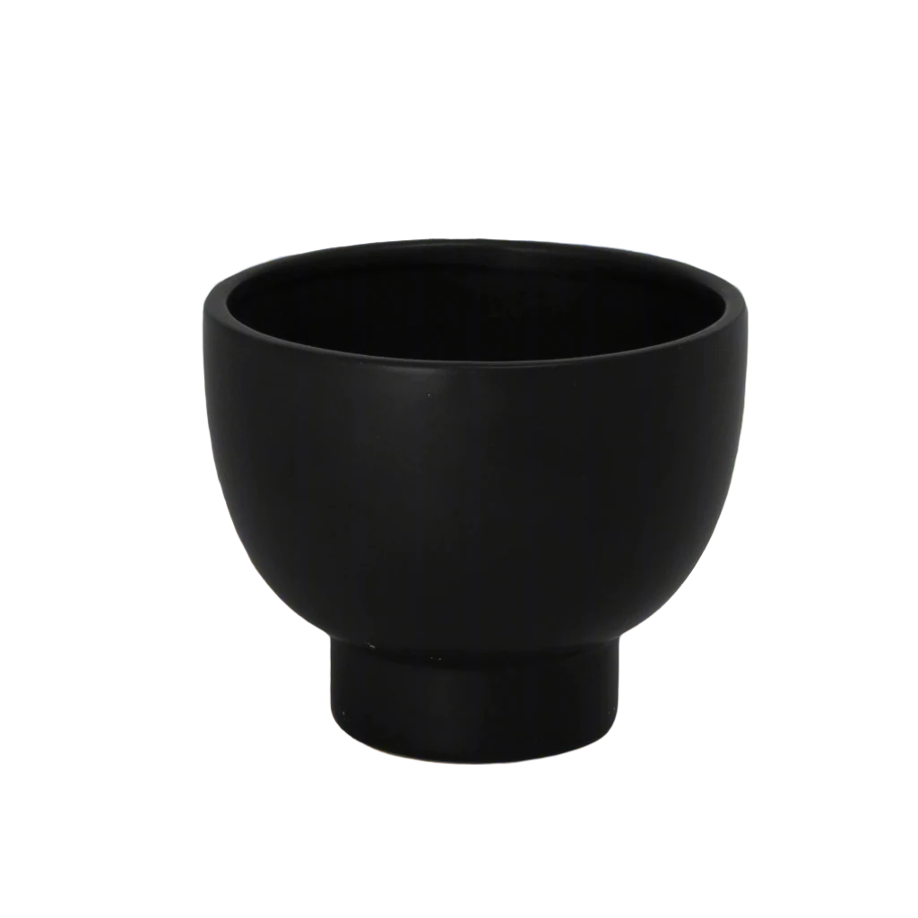 Add a modern touch to your indoor or outdoor space with the Faron Matte Ceramic Pot. This rounded flower pot features a clean silhouette and a smooth matte black finish, making it a versatile piece for minimalist or contemporary settings. Ideal for displaying small plants or succulents on tabletops, shelves, or window sills.