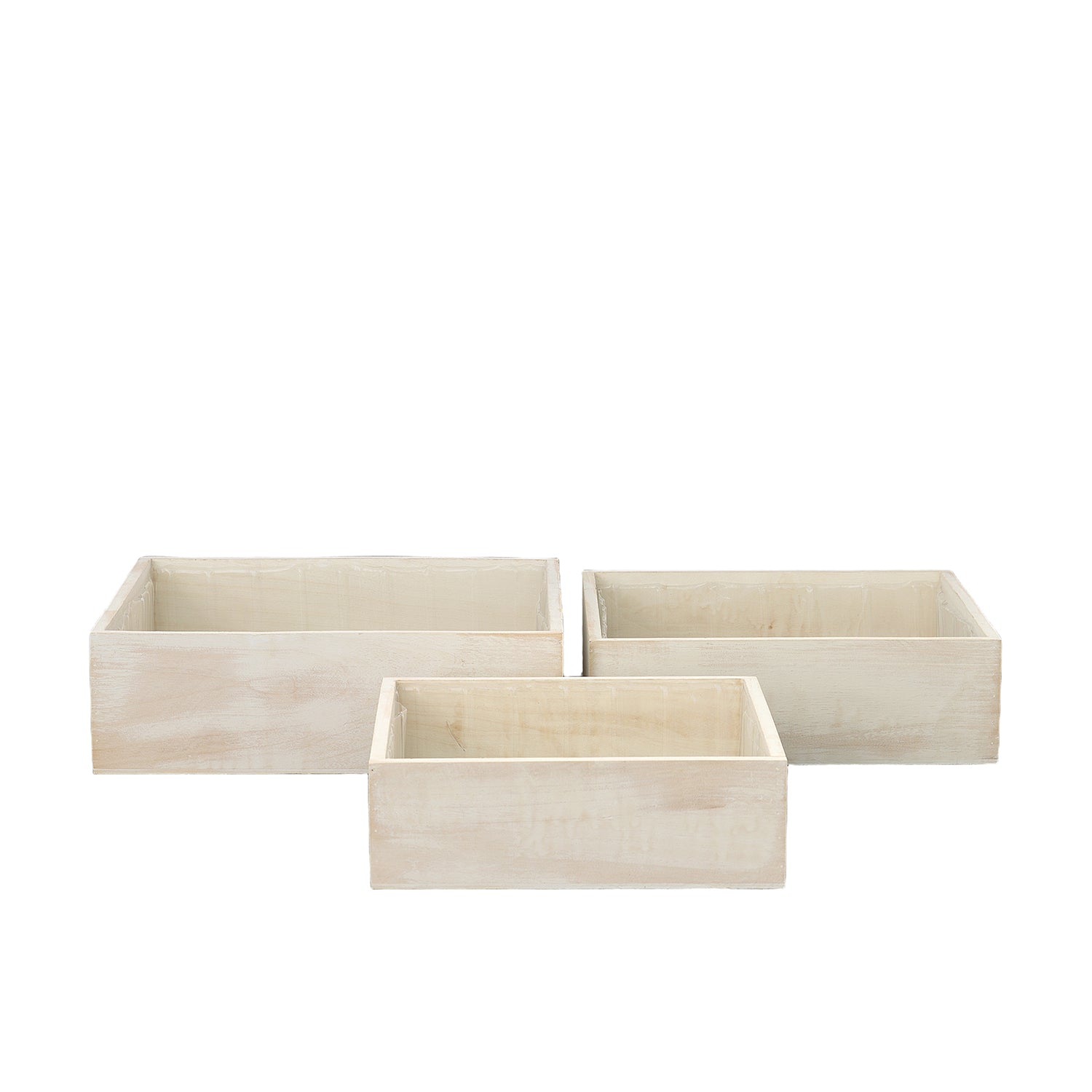 The Arden Wooden Square Planter Set offers a rustic yet refined way to display plants, florals, or decorative accents. Each planter is crafted with a square silhouette and low profile, making them versatile for both tabletop and floor styling. The natural wood grain is enhanced with either a matte white-wash finish for a soft, weathered look, or a matte natural finish for a warm, organic feel.