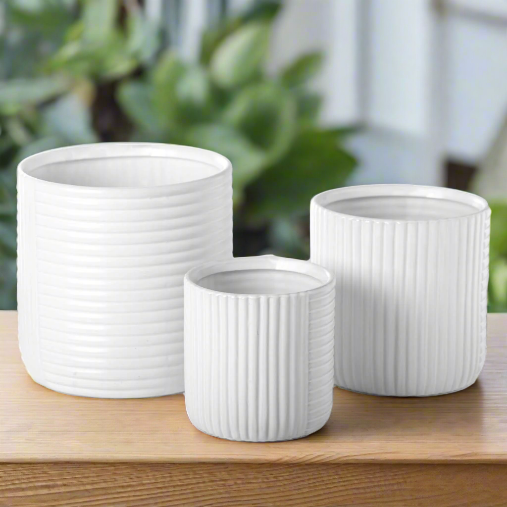 Looking for planters that combine modern artistry with timeless elegance? The Paloma Ceramic Round Planter Set features an embossed line abstract pattern that adds subtle texture and depth to its smooth matte finish. Designed in three complementary sizes, these planters are perfect for displaying succulents, greenery, or floral arrangements, making them a versatile choice for enhancing interiors, patios, or event décor.