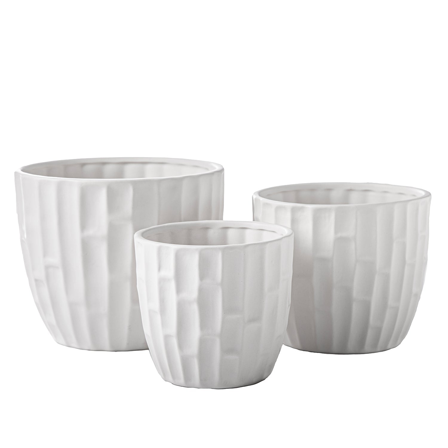 Looking for planters that blend structured design with modern style? The Palis Ceramic Round Planter Set features an embossed brick edges pattern along the body with a tapered bottom, creating a balanced mix of texture and elegance. Finished in a smooth matte glaze and offered in three versatile sizes, these planters are ideal for displaying greenery, succulents, or floral arrangements in homes, patios, or event spaces.