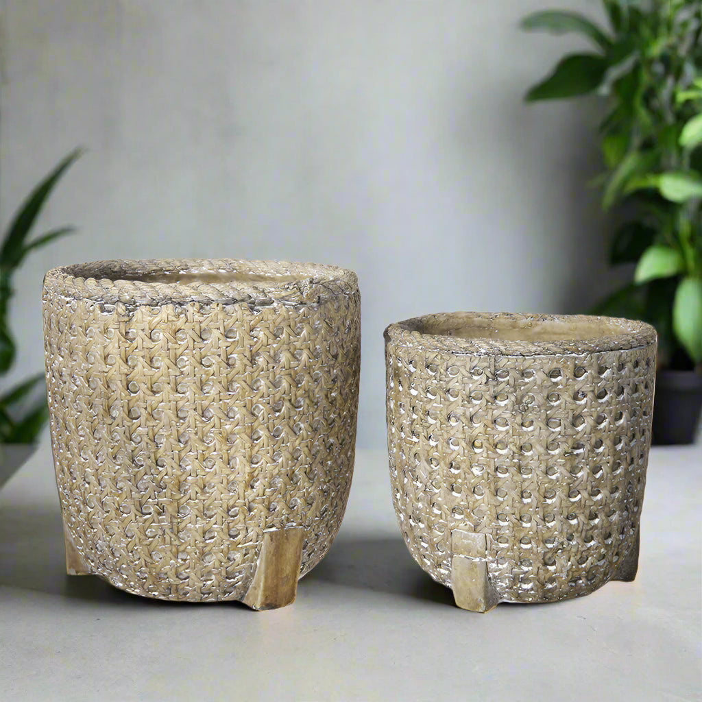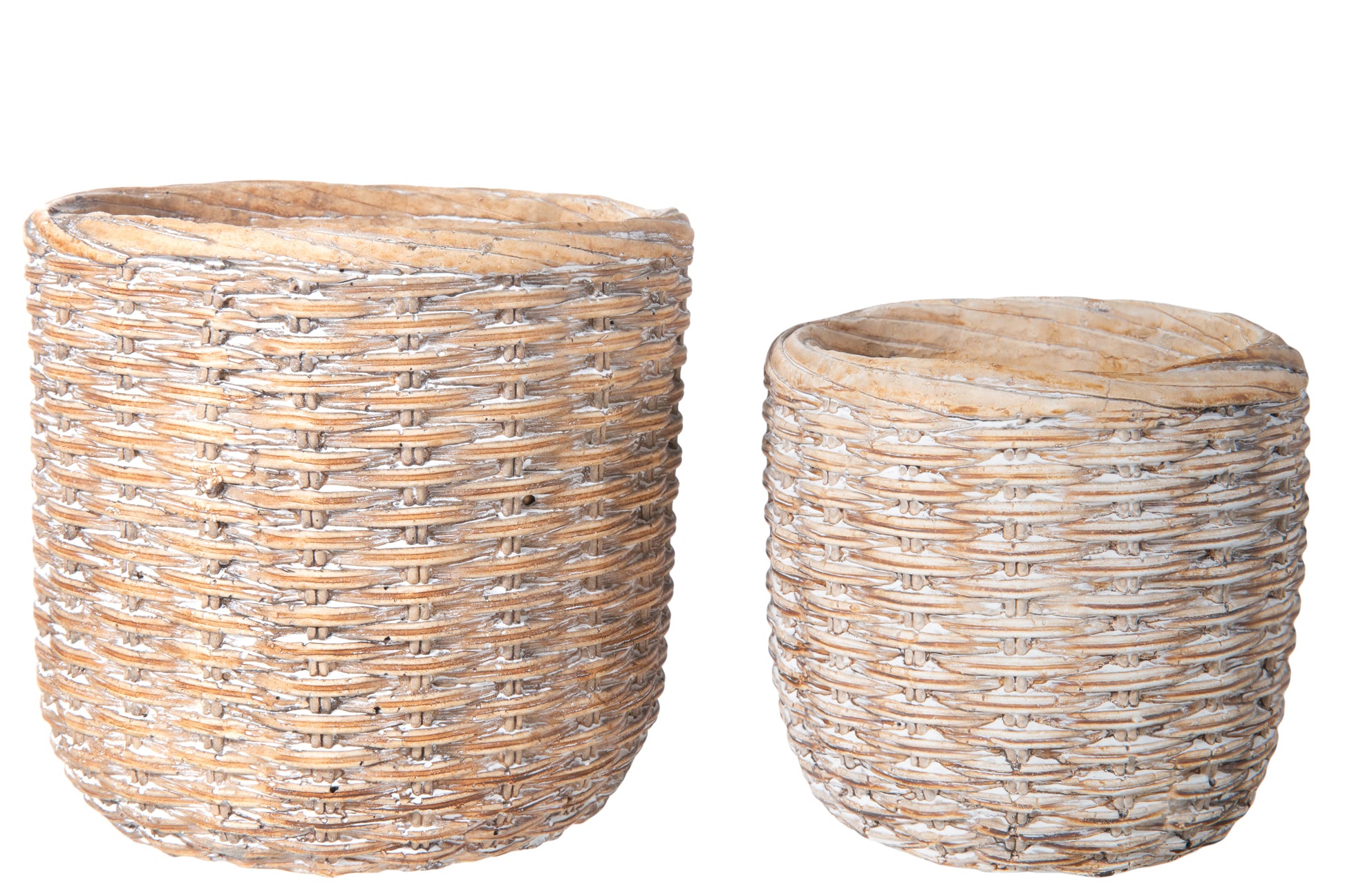 Add warmth and charm to your space with this set of terracotta round pots, featuring a washed finish, jute rope detail, and unique patterns perfect for showcasing your favorite plants indoors or out.