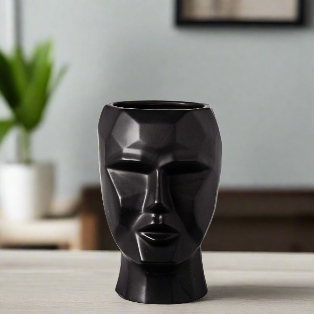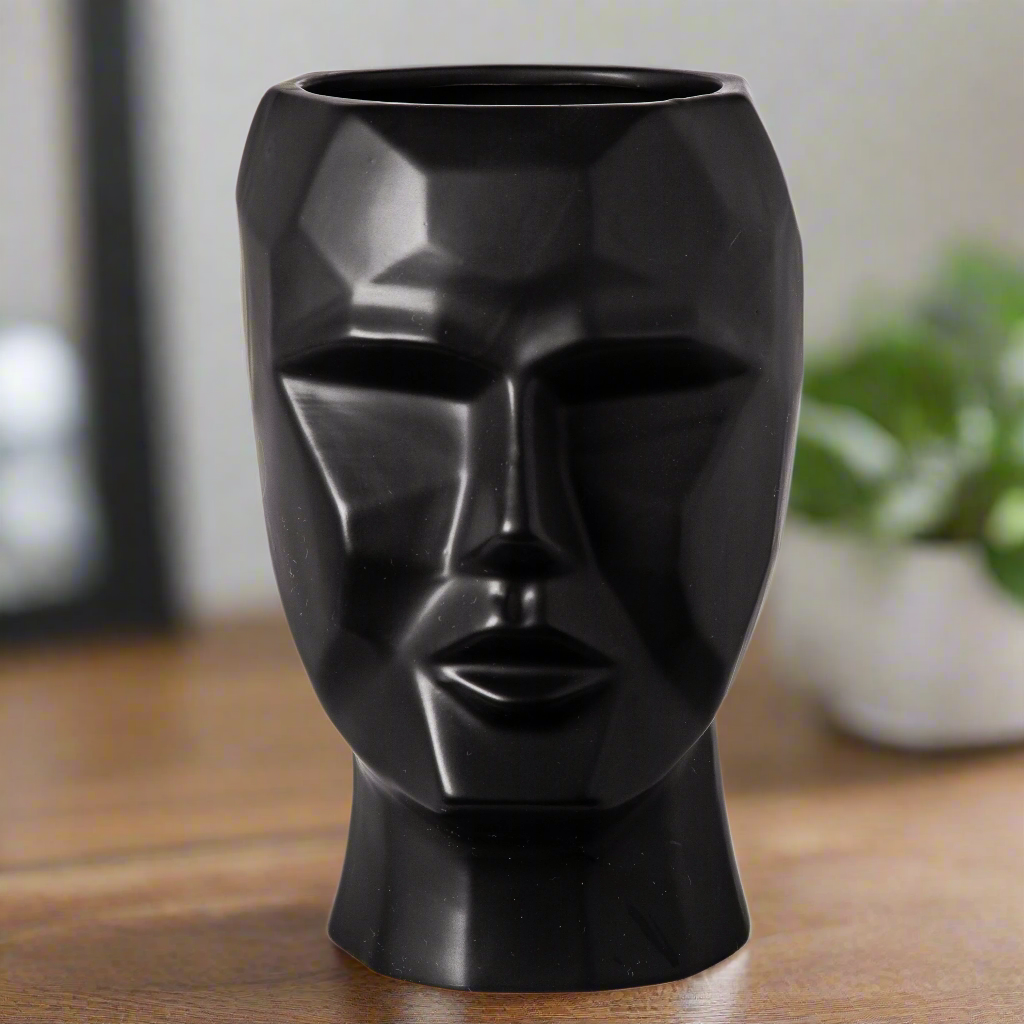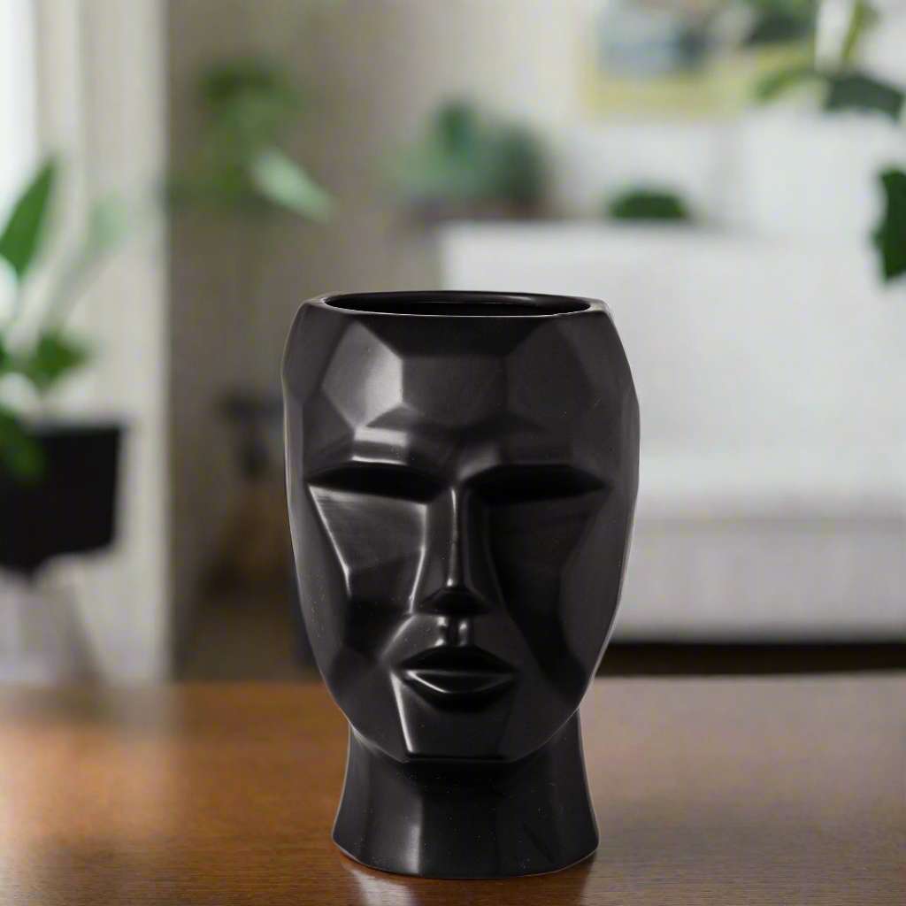 The Mavrik Pixelated Head Ceramic Pot is a striking decorative accent that blends modern artistry with functionality. Designed with a pixel-inspired, faceted surface, this sculptural piece reimagines the profile of a young man’s head. Its matte finish provides a refined touch, making it ideal as a plant holder, vase for dried florals, or a standalone statement piece.
