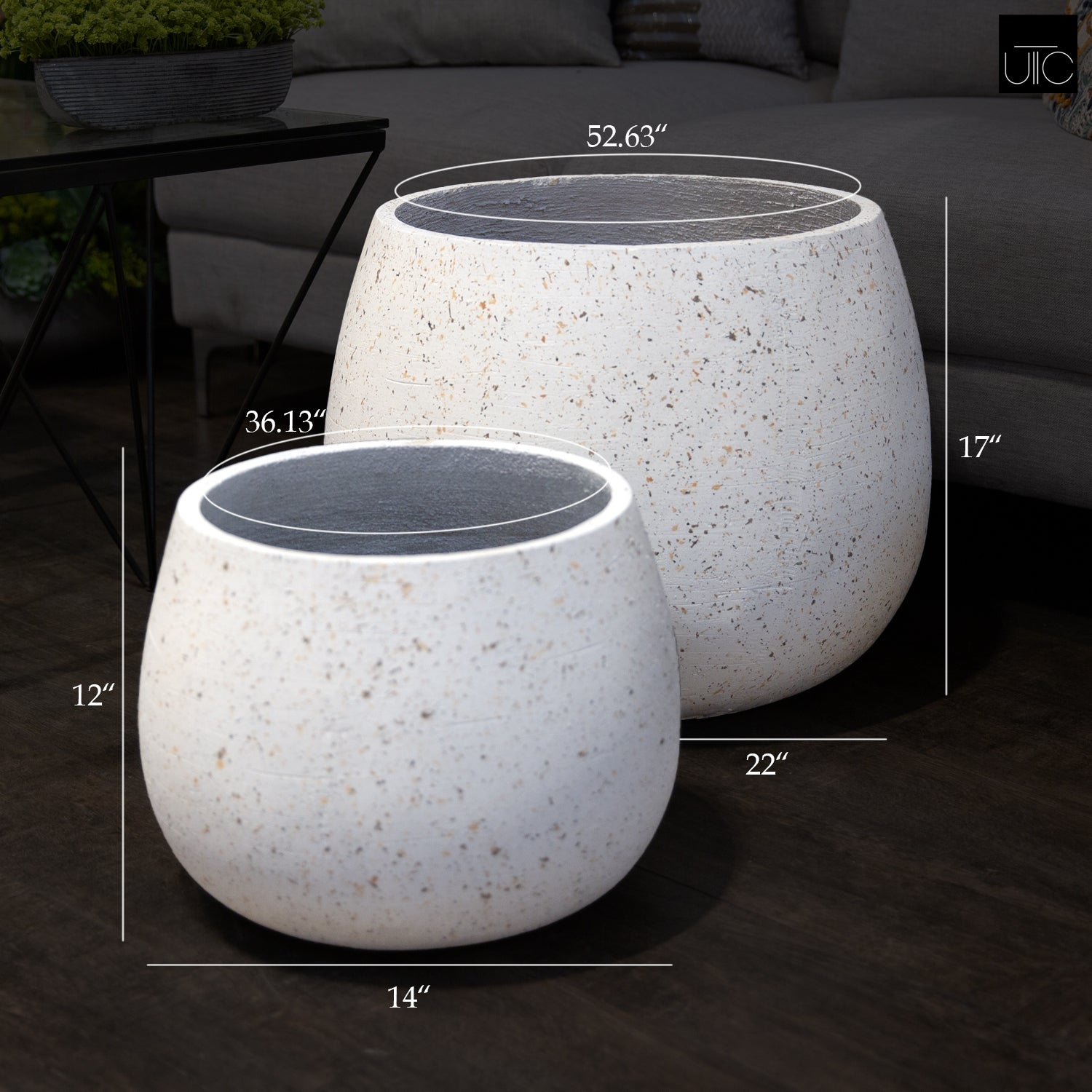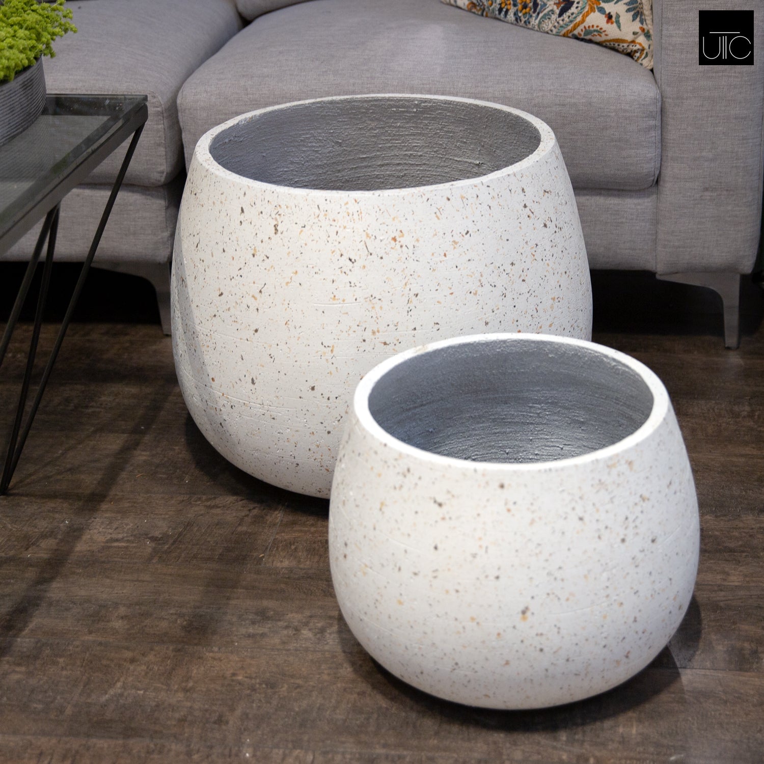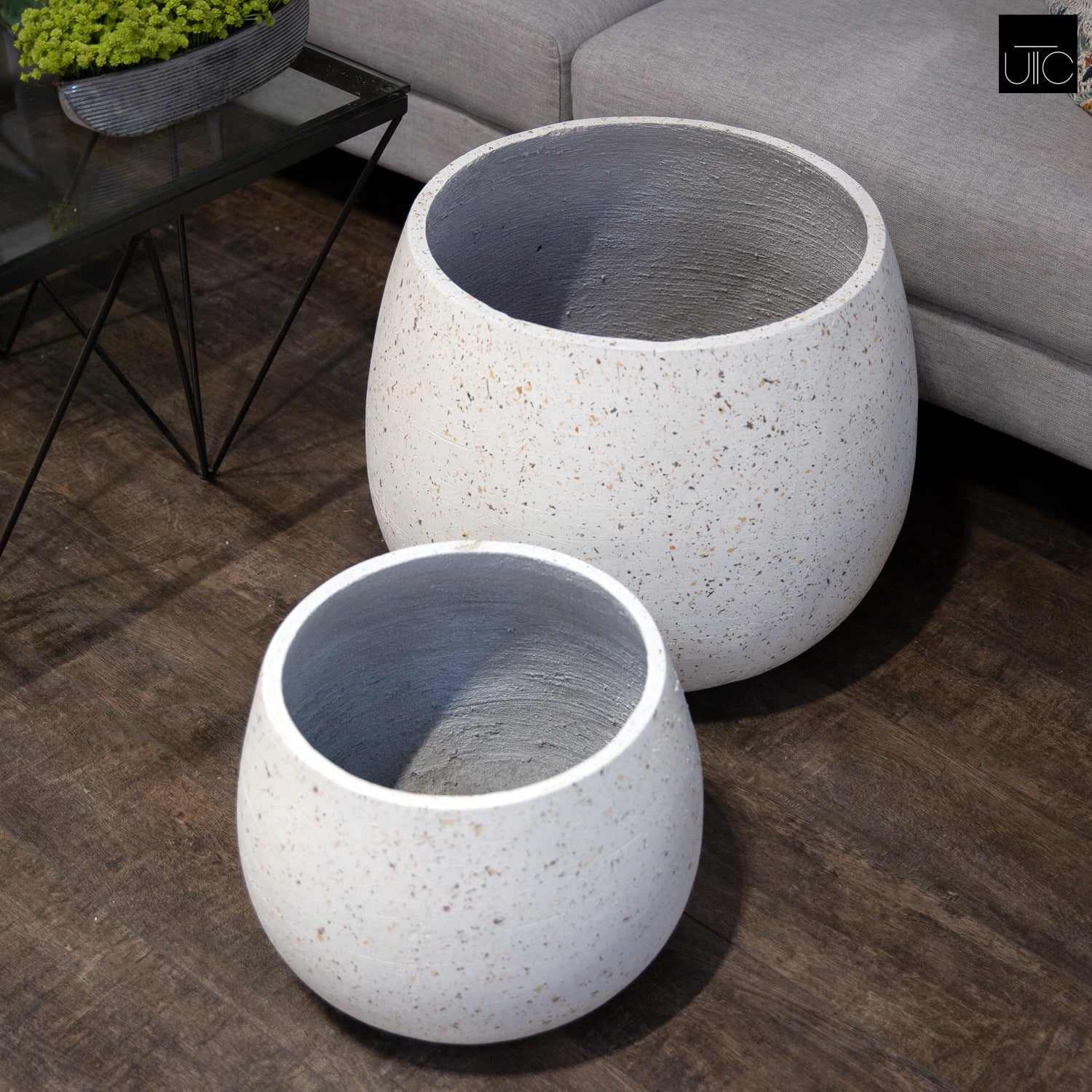 Crafted from durable cement, these pots provide stability and lasting quality, making them perfect for large plants or statement arrangements. The two graduated sizes allow for versatile styling, whether placed together for a cohesive display or individually to complement different areas of your home or garden.