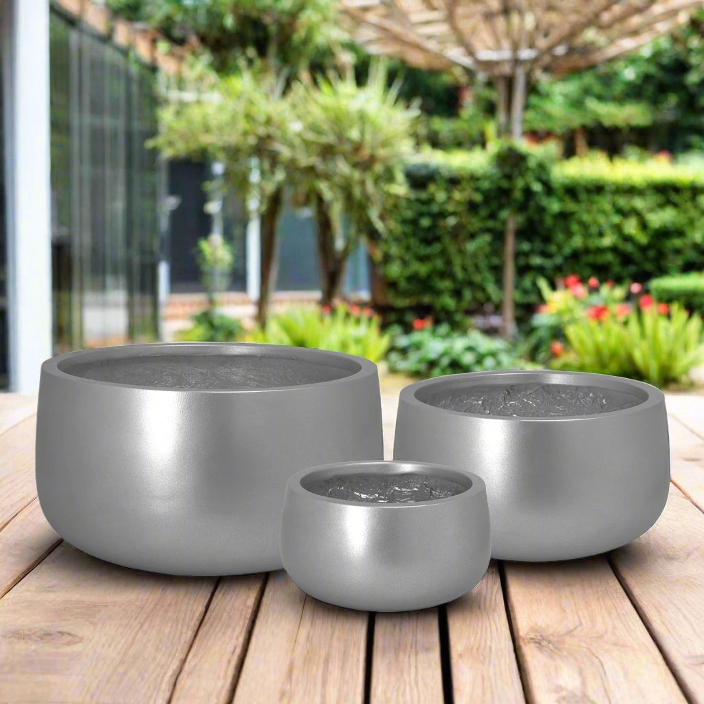 Nadene Silver Fiberclay Planter Set (Set of 3)
