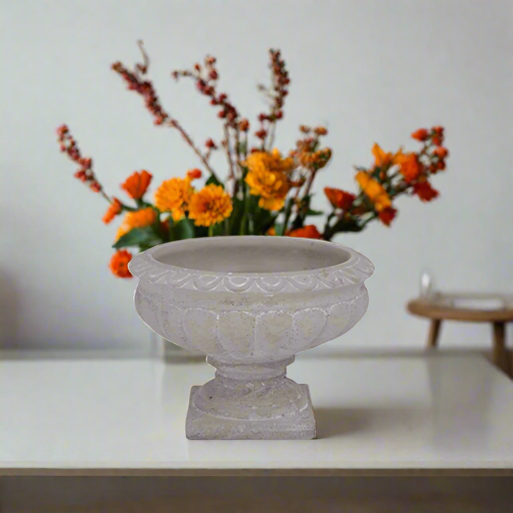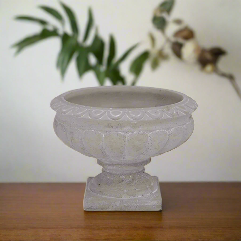 Looking to add a touch of timeless charm to your space? The Pavion Low Classic Cement Urn Vase is a sculptural statement that brings classical beauty and rustic warmth into any setting. Crafted from solid cement and finished in an antique gray wash, this low-profile urn features a wide bowl, tapered bottom, and a sturdy pedestal base that exudes vintage elegance.