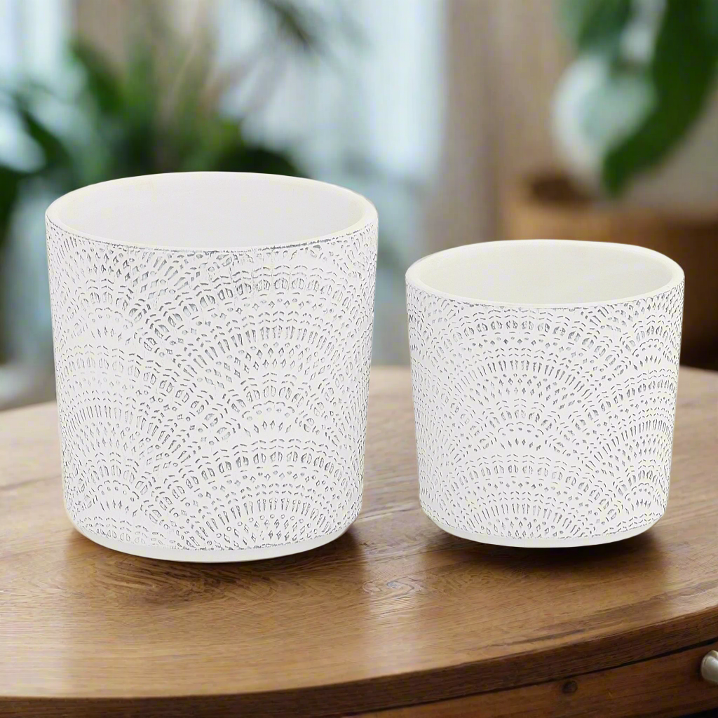 Perfectly sized for small plants, succulents, or decorative accents, the Selva Planters offer two coordinating sizes that can be displayed together for a layered look or styled separately in different areas. Their sturdy construction and textured design make them a timeless addition to any home or office.