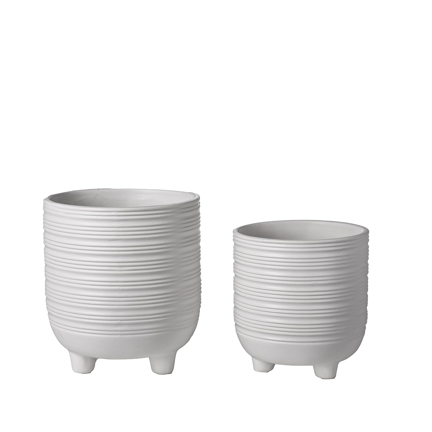 Varenne White Striped Tripod Planter Set (Set of 2)