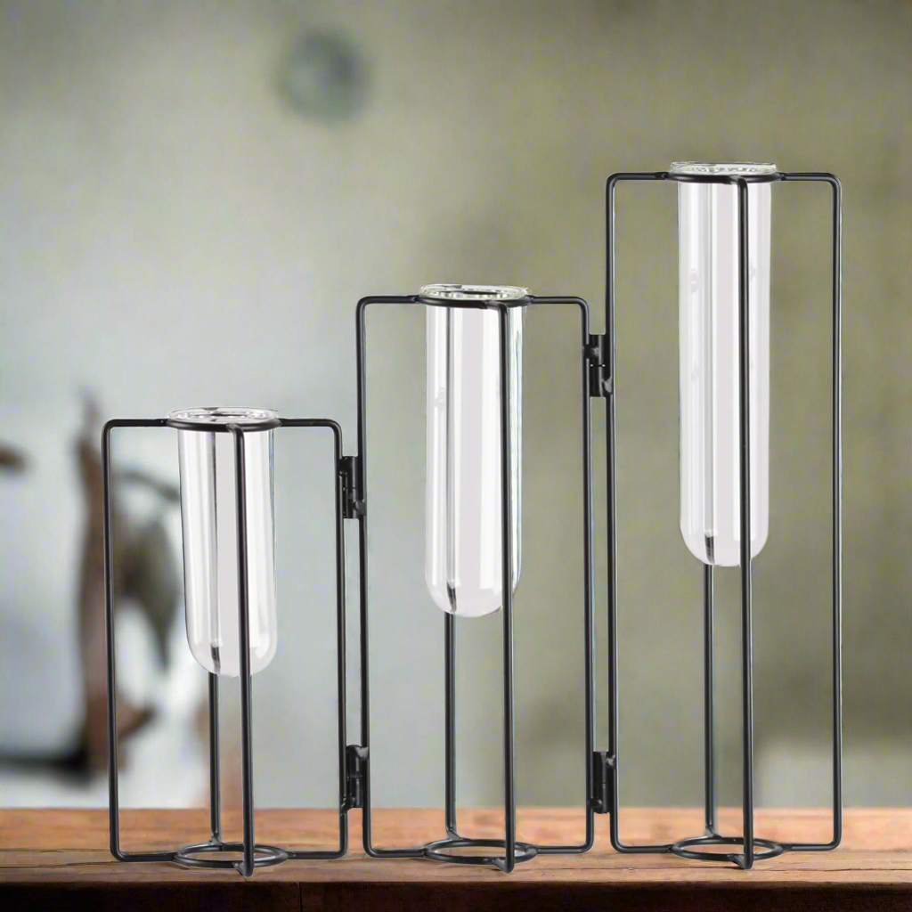 - Clustered glass tube vases in varying heights